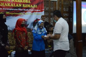 SOSIALISASI BAHAYA NARKOBA DAN KENAKALAN REMAJA KEPADA : KARANGTARUNA PILAR MUDA DESA KRAGAN BERSAMA WAKIL BUPATI KARANGANYAR (KETUA P4GN KAB. KARANGANYAR) DI BALAI DESA KRAGAN, KEC. GONDANGREJO 27 SEPTEMBER 2020