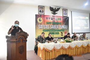 RAPAT KOORDINASI SATGAS SABER PUNGLI KABUPATEN KARANGANYAR TAHUN 2020, DI RUANG ANTHORIUM RUMAH DINAS BUPATI KARANGANYAR. RABU, 7 OKTOBER 2020.