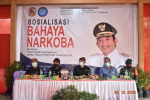 SOSIALISASI BAHAYA NARKOBA BAGI WARGA MASYARAKAT TEMUIRENG OLEH WAKIL BUPATI KARANGANYAR (KETUA P4GN KABUPATEN KARANGANYAR) DI PENDOPO AROSIDIN, TEMUIRENG, KELURAHAN TEGALGEDE, KECAMATAN KARANGANYAR. KAMIS, 8 OKTOBER 2020.