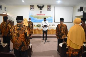 PENGUKUHAN PENGURUS LEMBAGA KOORDINASI KESEJAHTERAAN SOSIAL KABUPATEN KARANGANYAR MASA BAKTI TAHUN 2020-2023 DI RUANG ANTHORIUM RUMAH DINAS BUPATI KARANGANYAR. RABU, 14 OKTOBER 2020.