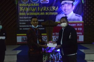 SOSIALISASI BAHAYA NARKOBA DAN KENAKALAN REMAJA OLEH WAKIL BUPATI KARANGANYAR (KETUA P4GN KABUPATEN KARANGANYAR) DI BALAI DESA KRENDOWAHONO, KECAMATAN GONDANGREJO. MINGGU, 18 OKTOBER 2020.