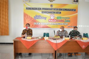 PEMBINAAN PERANGKAT DESA DAN LEMBAGA DESA SE KECAMATAN JATEN SERTA LAUNCHING “HALO SIAGA JATEN” OLEH BUPATI KARANGANYAR DI AULA KECAMATAN JATEN. SELASA, 20 OKTOBER 2020.