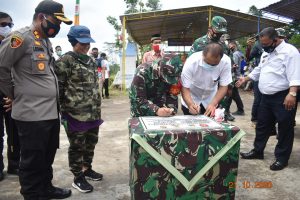 PERESMIAN DAN PENINJAUAN LOKASI JALAN COR BETON, JEMBATAN SERTA TALUD PROGRAM TMMD REGULER KE-109 TAHUN ANGGARAN 2020 KABUPATEN KARANGANYAR DI DESA JATIWARNO, KECAMATAN JATIPURO. RABU, 21 OKTOBER 2020.