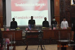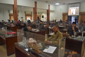 RAPAT PARIPURNA DPRD KABUPATEN KARANGANYAR MASA SIDANG I PENYAMPAIAN PANDANGAN UMUM FRAKSI TERHADAP 6 (ENAM) RAPERDA KABUPATEN KARANGANYAR DAN PENYAMPAIAN PENDAPAT BUPATI TERHADAP 2 (DUA) RAPERDA INISIATIF DPRD DI RUANG RAPAT PARIPURNA DPRD KABUPATEN KARANGANYAR. KAMIS, 22 OKTOBER 2020.