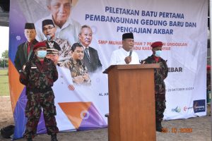PELETAKAN BATU PERTAMA PEMBANGUNAN GEDUNG BARU SMP MUHAMMADIYAH 7 PROGRAM UNGGULAN COLOMADU KARANGANYAR DAN PENGAJIAN AKBAR BERSAMA : Drs. H. AHMAD DAHLAN RAIS, M.Hum., DI DUSUN BOLON, DESA BOLON, KECAMATAN COLOMADU. RABU, 28 OKTOBER 2020.