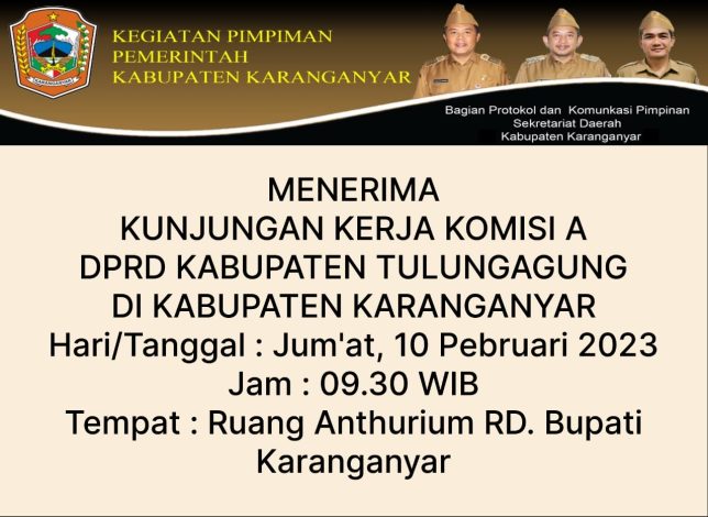 MENERIMA KUNJUNGAN KERJA KOMISI A DPRD KABUPATEN TULUNG AGUNG DI KABUPATEN KARANGANYAR oleh Sekretariat Daerah Kabupaten Karanganyar | Feb 10, 2023 | Tak Berkategori | 0 Komentar Kirim Komentar Batalkan balasanAlamat email Anda tidak akan dipublikasikan. Ruas yang wajib ditandai *Komentar * Nama * Email * Situs Web Simpan nama, email, dan situs web saya pada peramban ini untuk komentar saya berikutnya.