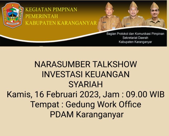 NARASUMBER TALKSHOW INVESTASI KEUANGAN SYARIAH oleh Sekretariat Daerah Kabupaten Karanganyar | Feb 16, 2023 | Berita, Gallery, Informasi Publik, Tak Berkategori | 0 Komentar Kirim Komentar Batalkan balasanAlamat email Anda tidak akan dipublikasikan. Ruas yang wajib ditandai *Komentar * Nama * Email * Situs Web Simpan nama, email, dan situs web saya pada peramban ini untuk komentar saya berikutnya.