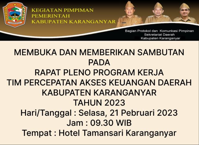 MEMBUKA DAN MEMBERIKAN SAMBUTAN PADA RAPAT PLENO PROGRAM KERJA TIM PERCEPATAN AKSES KEUANGAN DAERAH KABUPATEN KARANGANYAR oleh Sekretariat Daerah Kabupaten Karanganyar | Feb 21, 2023 | Tak Berkategori | 0 Komentar Kirim Komentar Batalkan balasanAlamat email Anda tidak akan dipublikasikan. Ruas yang wajib ditandai *Komentar * Nama * Email * Situs Web Simpan nama, email, dan situs web saya pada peramban ini untuk komentar saya berikutnya.