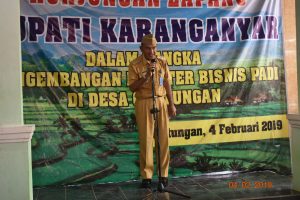 Kunjungan Lapangan Bupati Karanganyar Dalam Rangka Pengembangan Kluster Bisnis Padi di Desa Gentungan Kecamatan Mojogedang